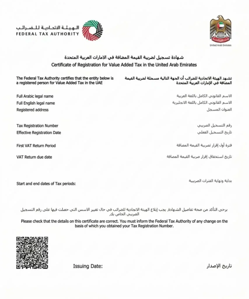 It is essential that all information on the certificate matches your current business records. Any discrepancies must be corrected promptly via EmaraTax.